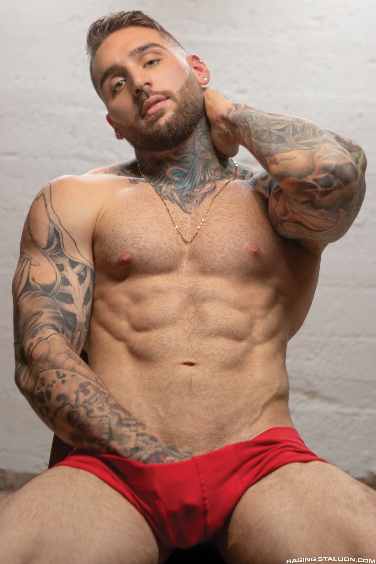Tattooed gay mechanic Bo Sinn fucks his client Skyy Knox in the ass