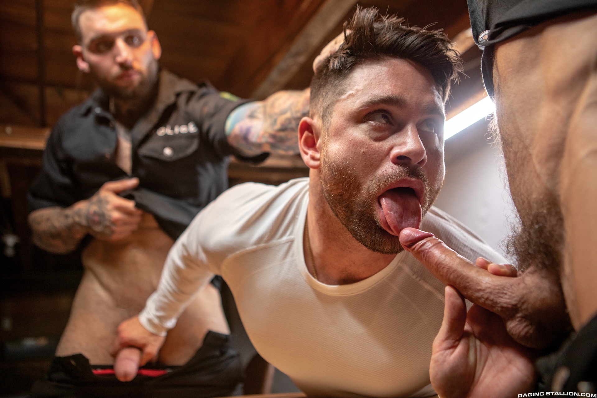 Kinky gay police officers James Huntsman and Ray Diaz fuck in the locker room