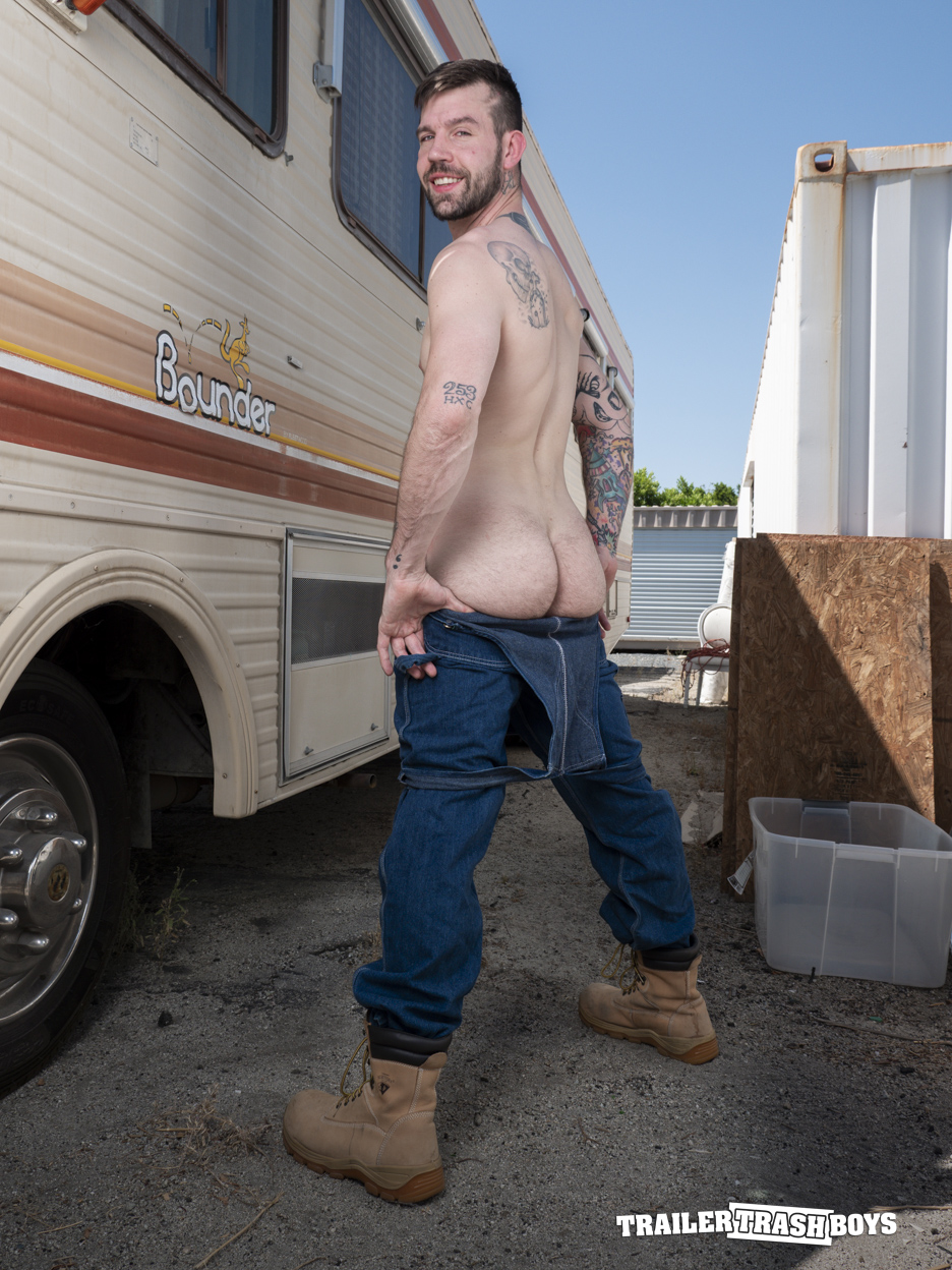 Hung bearded gay men Levi & Brogan show off their big muscles, sexy gay asses & fuck