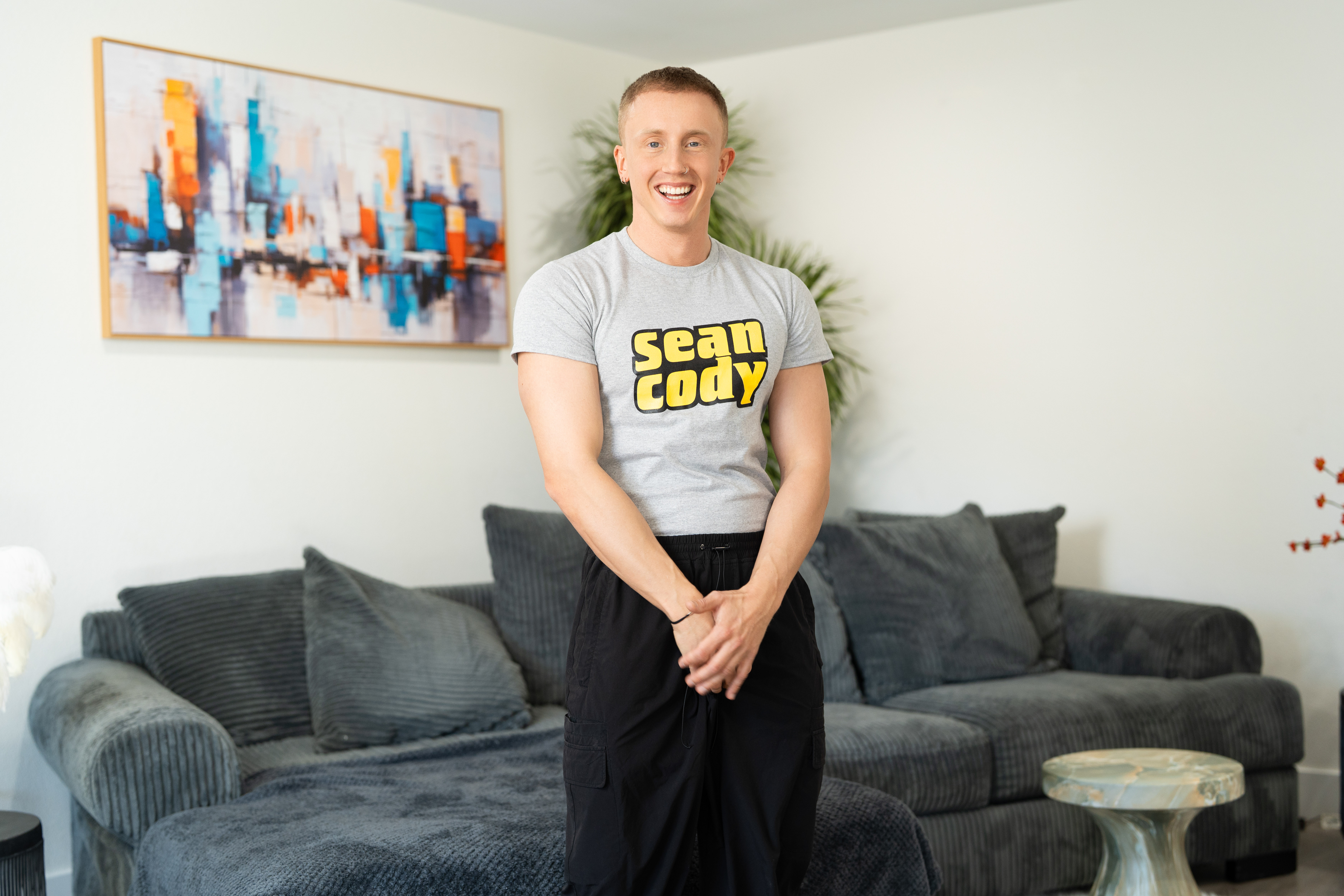 Amateur gay studs Trent & Denny wank their big dicks after blowing each other