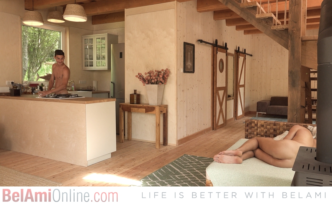Gay friends Zak Bishop and Brandon Anderson undress and fuck on the terrace