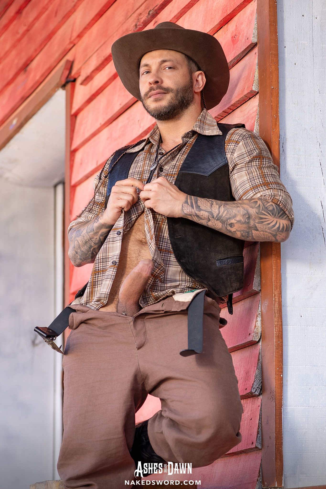 Hot gay stud Dante Martin has hardcore anal sex with a cowboy outdoors