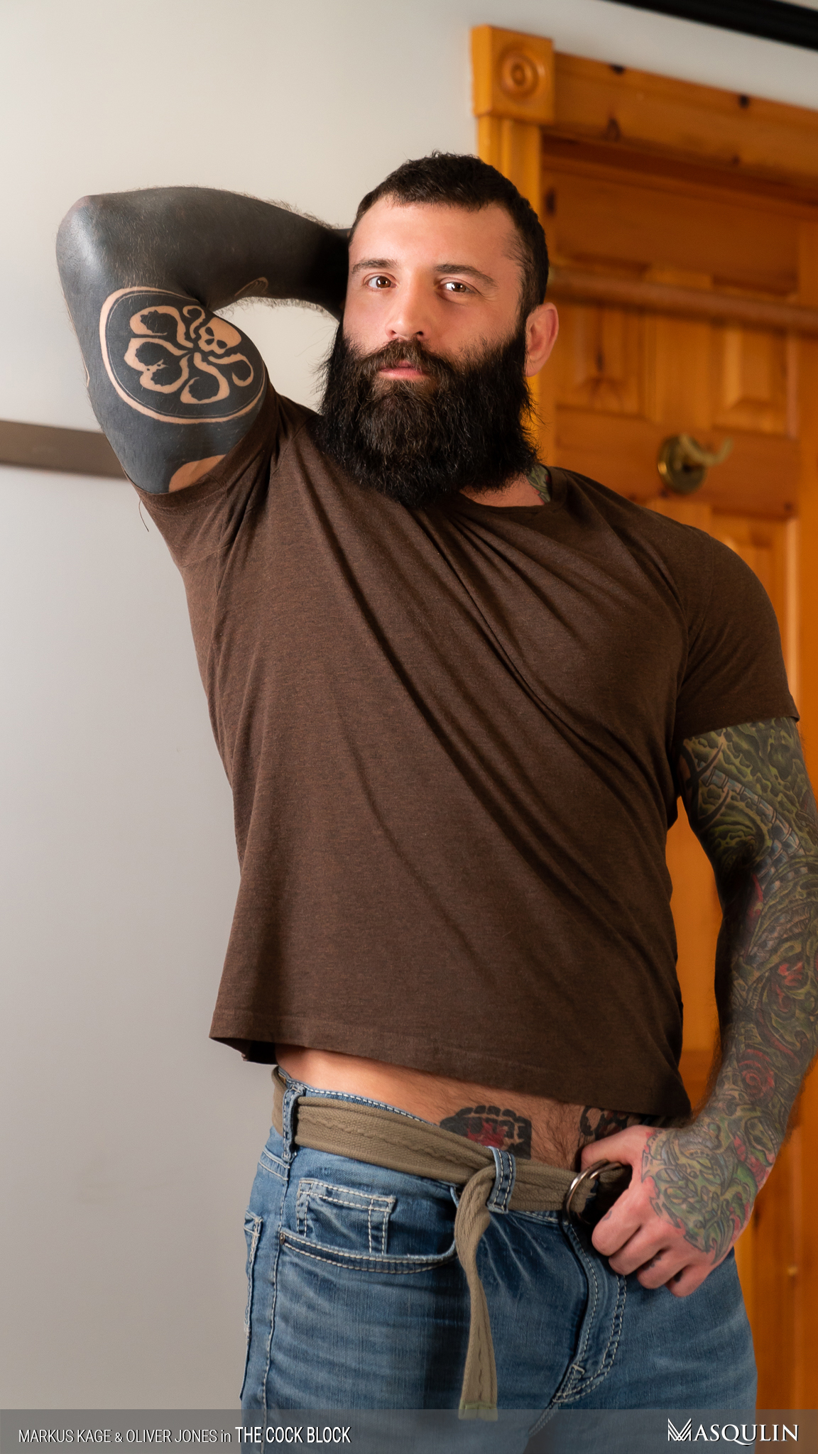 Tattooed muscled stud Brodie fucks blonde Markus in the ass & cums on his face