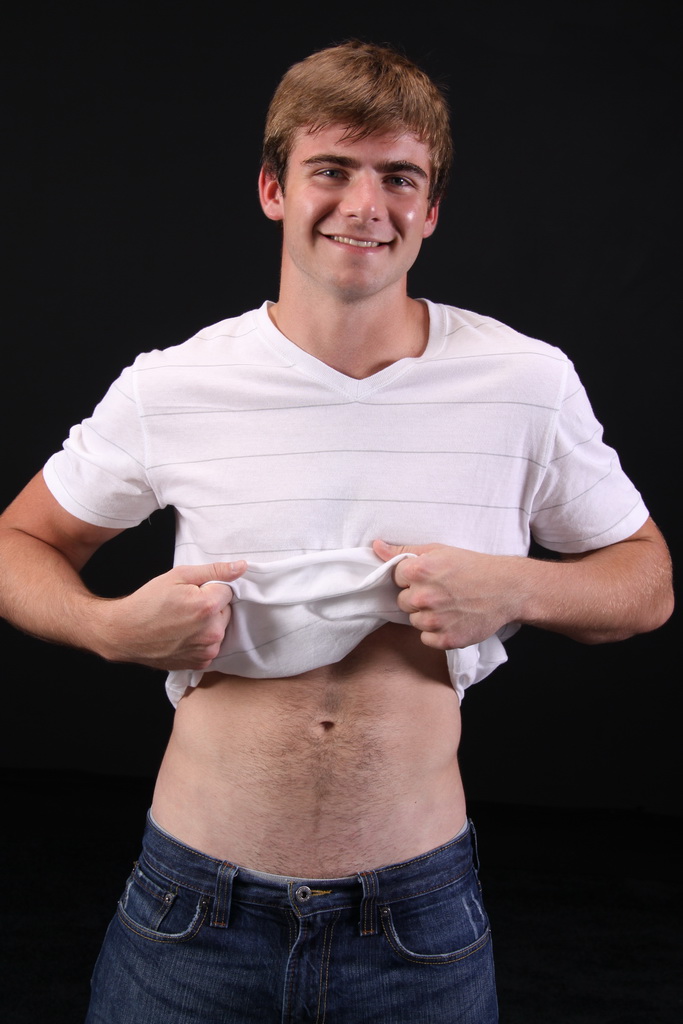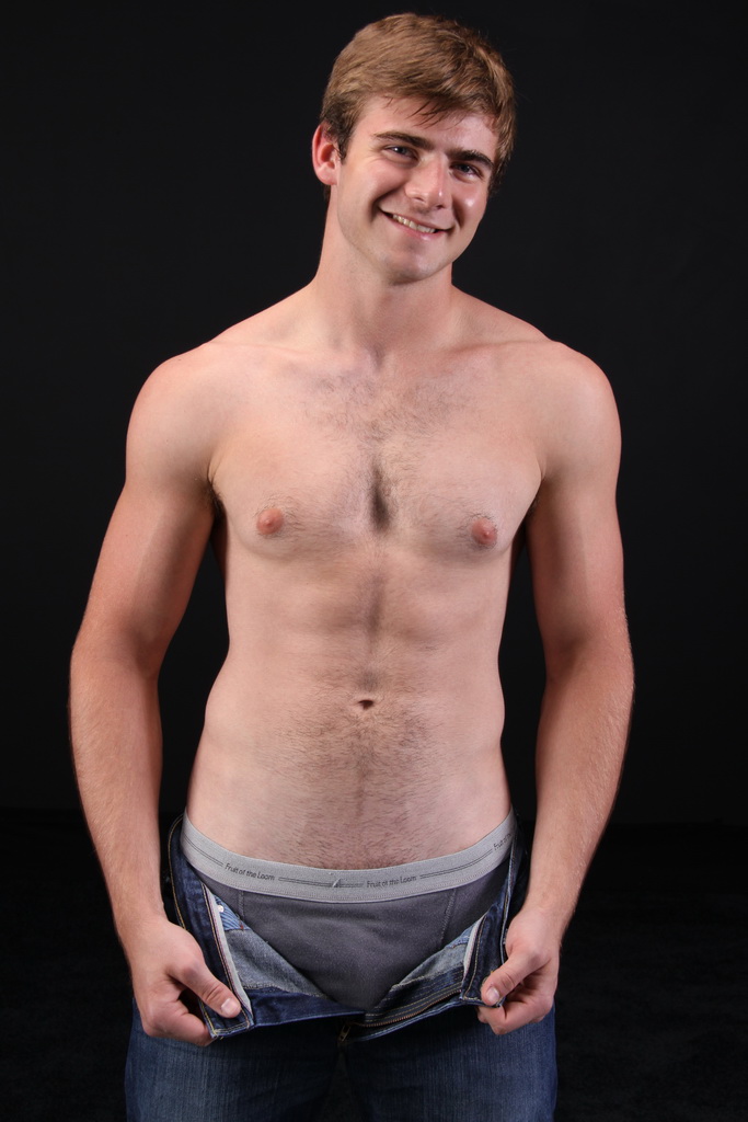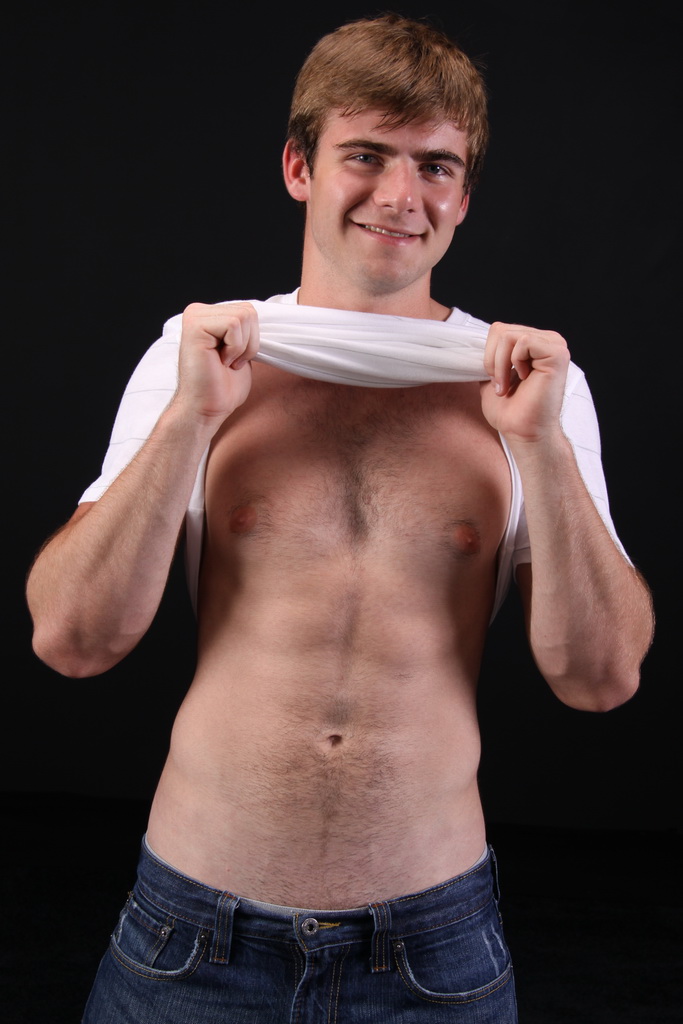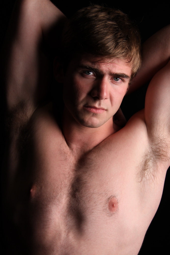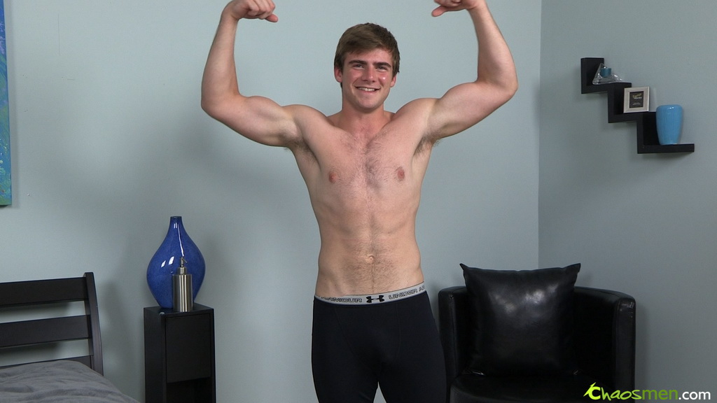 Handsome gay model Tom Smith unveils his muscular tanned body & rod at the gym