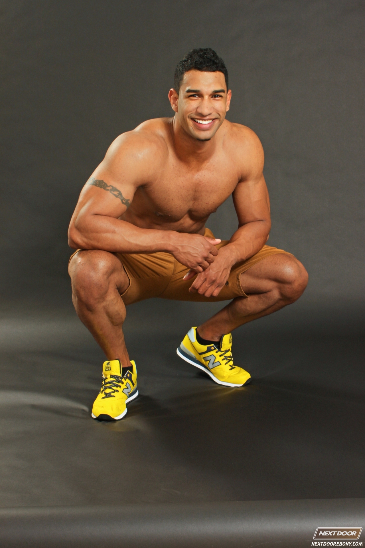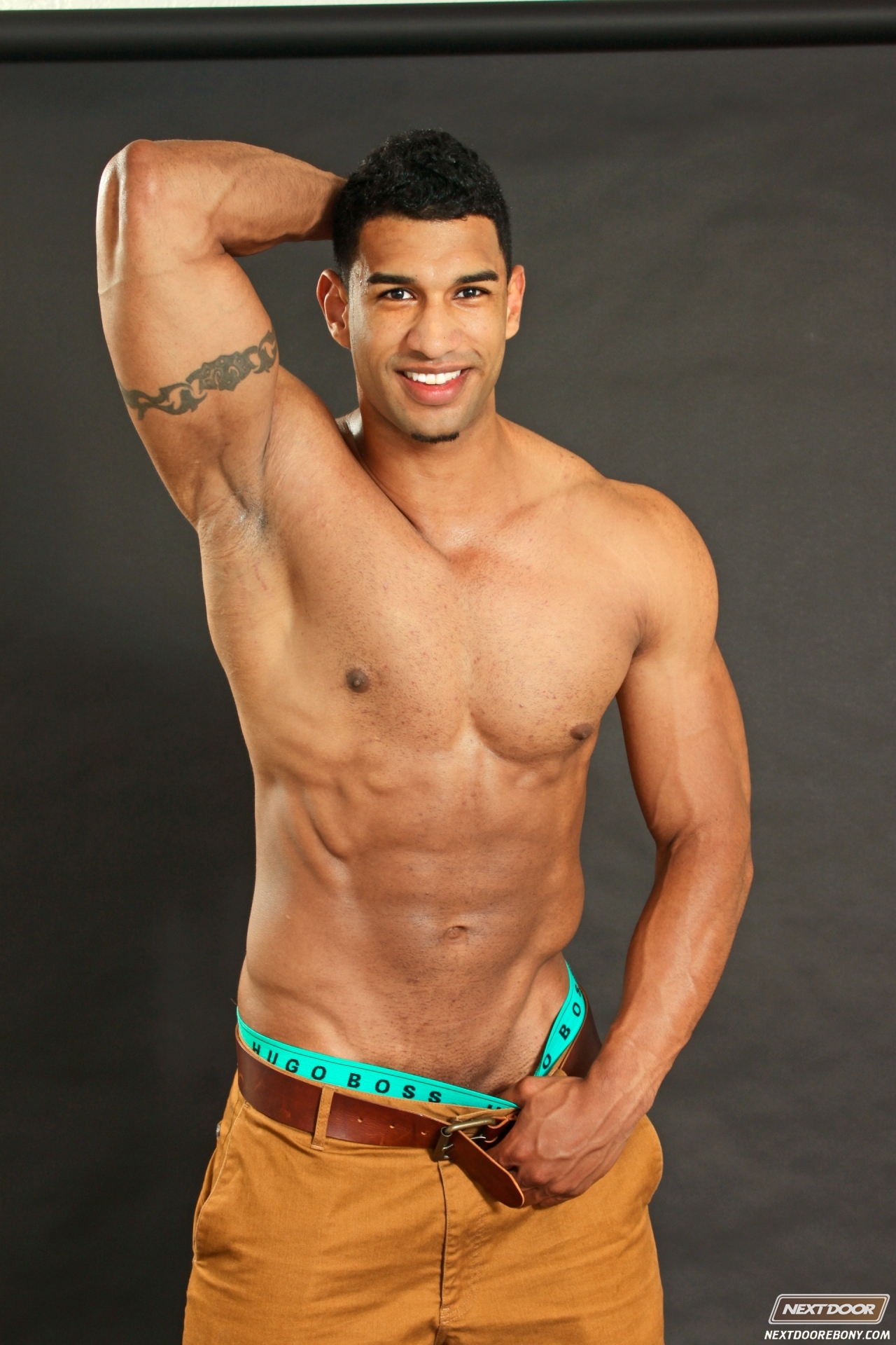 Hot gay Latino Carlos Perez strips his black undies & shows his curved dick